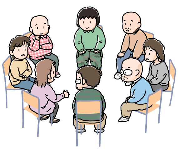 定例会では、「近況報告をかねた分かち合い」「フリートーク」「ふりかえり」などを行ないます。